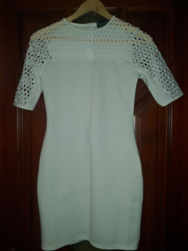 Сукня в гарному молочному кольорі,гідно підкреслює фігуру тканина не просвічує,добре тягнеться.Довжина від плеча 81см.,пог 39+10 див.,побіди 42 +тягнеться 10см.