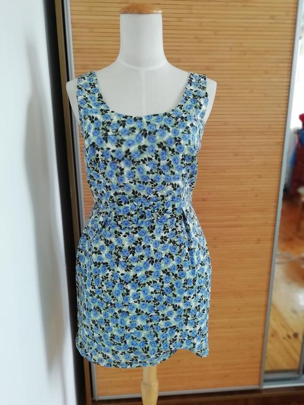 Плаття котонове на підкладці, на замочку. Довжина 77, пояс 68, стегна 90-92.