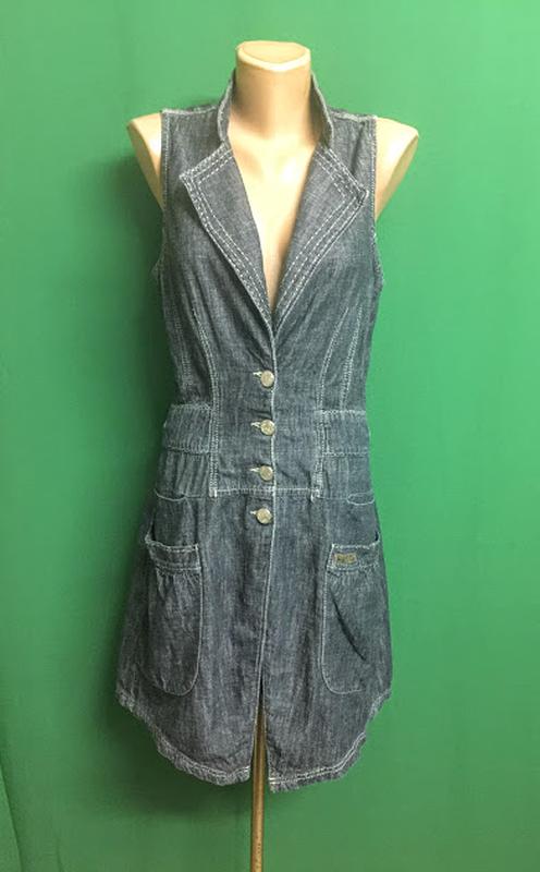 Оригинальное Джинсовое Мини Платье Blue Sista (Турция) - 100% Каттон, не грубый, летний Указан размер L, маломерит на М(12), наш 46 размер Ширина плеч 29 см Пройма 24 см Пог 48 см Пот 42 см Поб 50 см Общая длина 90 см Длина спинки от воротника до талии 37 см Юбка от талии вниз 42 см Спереди 4 кармана Отличное состояние Без торга