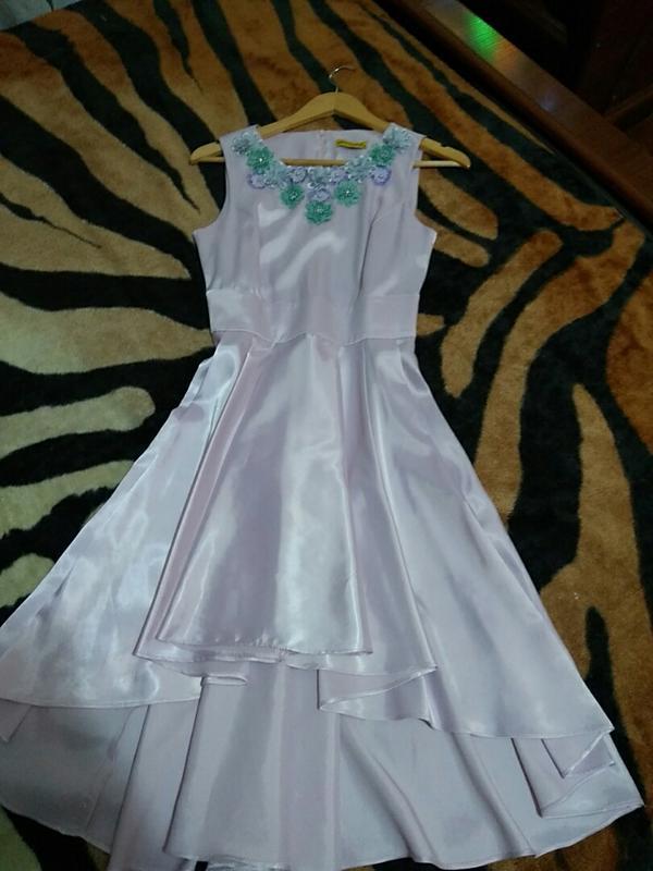 Очень красивое атласное платье с коротким шлейфом. розоваое по фигуре.
