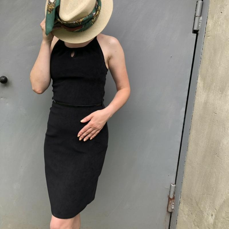 --розмір {10}S/M --довжина 90см --побгрудей 42{+3-4см} --побталії 36см поббедер46см ззаду присутній замочок, можливо носити з поясочком -тканина туга,типу замш, але й тягнеться трішки -дуже приємна і невагома}