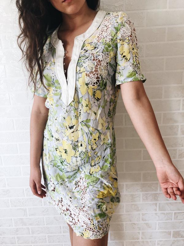 тонке літнє ніжне платтячко з елементами прозорих плетінь і камінчиками з пояском 100% silk S є ньюанси { відповім в дірект}