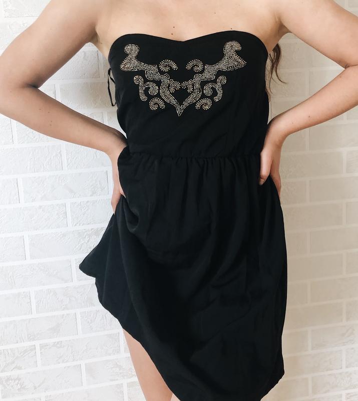 платтячко матового чорного кольору pimkie з елементами вишивки бісером корсет дуже добре прилягає до тіла, а резинка підкреслює талію M