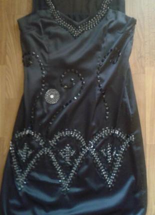 Шикарное платье из тончайшего атласа с неповторимым узором из камней,выполненным вручную.Сбоку потайная молния,внутри тоненькая подкладка,ткань не тянется,все камни пришиты.Покупала дорого,надето один раз.Ог -45см,От-40см,Об-47см,длина 88см.Учитывайте,что платье не тянется и имеет тоненькую подкладку.