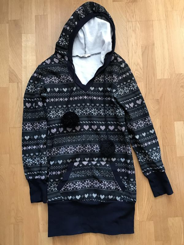 Теплое платье с помпонами,отлично подойдет на зиму под угги/сапожки.Длина платья 78см,длина рукава - 65см.Одевалось на параметры: обьем груди - 88см,талия - 66см,бедра - 90см.Платье с начёсом,фото на теле нет.