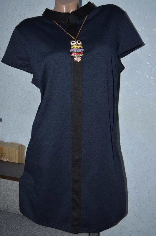 Суворе темно-синє плаття - туніка батального розміру , воротнічок і обробка - чорні , з бирочке 18 , РУМУНІЯ , склад 83 % поліестр 12 % віскоза 5 % еластан довжина - 85 см , ог - 120 - 126 см , стегна - 120 - 126 см , низ 136 см , стан ідеальний