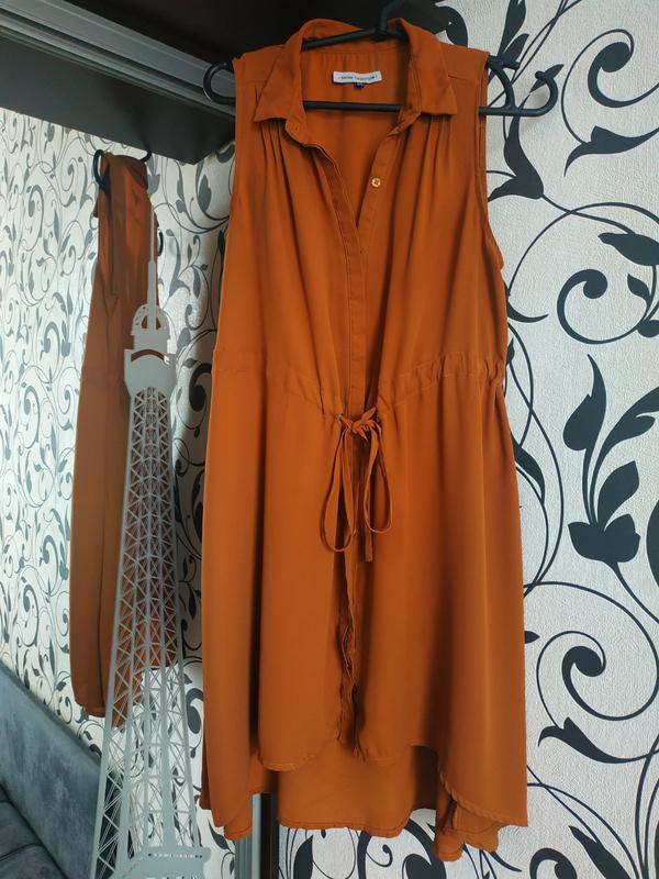 Ткань шифон, застёгивается на пуговицы и шнуровку. Размер соответствует бирке. Длина поколена, сзади длиннее чем спереди. Очень хорошо сидит по фигуре, лёгкое, красиво спадающая юбка.
