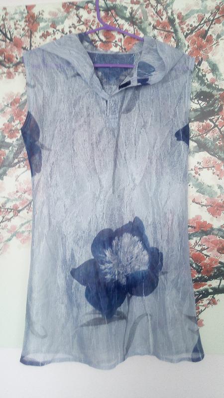 Тунника из легкой ткани очень красивая с капюшоном. Качественная. Длина до линии бедер.