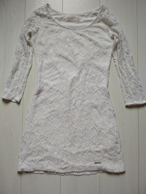 короткое ажурное платье с подкладкой натуральной.длинна 68см.рукав3/4.