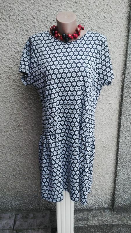 Платье трикотажное с баской, цветочный принт,большой размер f&f