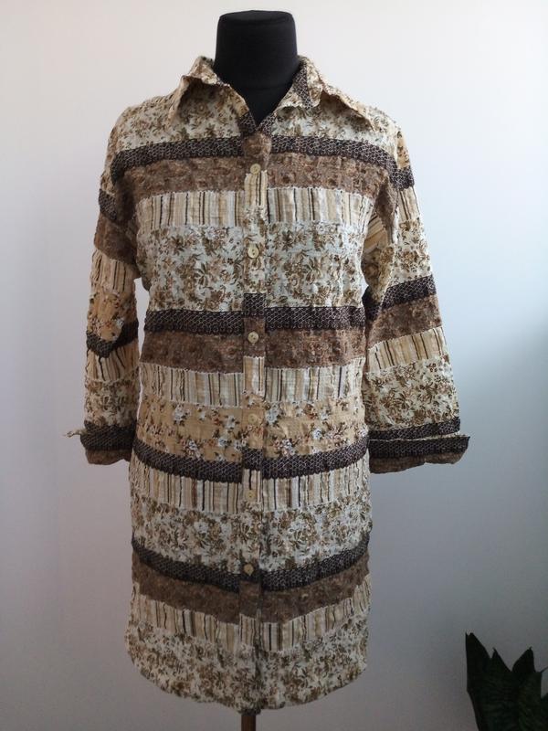 Платье рубашка туника от etam Размер - 12 Цвет - беж, коричневый принт Ткань не светится Крой - прямой Рукав три четверти с отворотом Застежка - пуговицы спереди по всей длине Длина - 90 см, пог - 49 см, пот - 47 см, поб - 50 см, рукав - 53 см, плечо - 13 см.