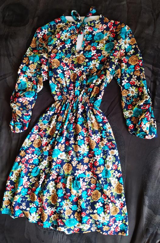 Лёгкое платье в цветочный принт под резинку плечи -43см длина - 85 см рукав -54 см (регулируется до длины 3/4) ПОГ -49 см ...подходит на р.М