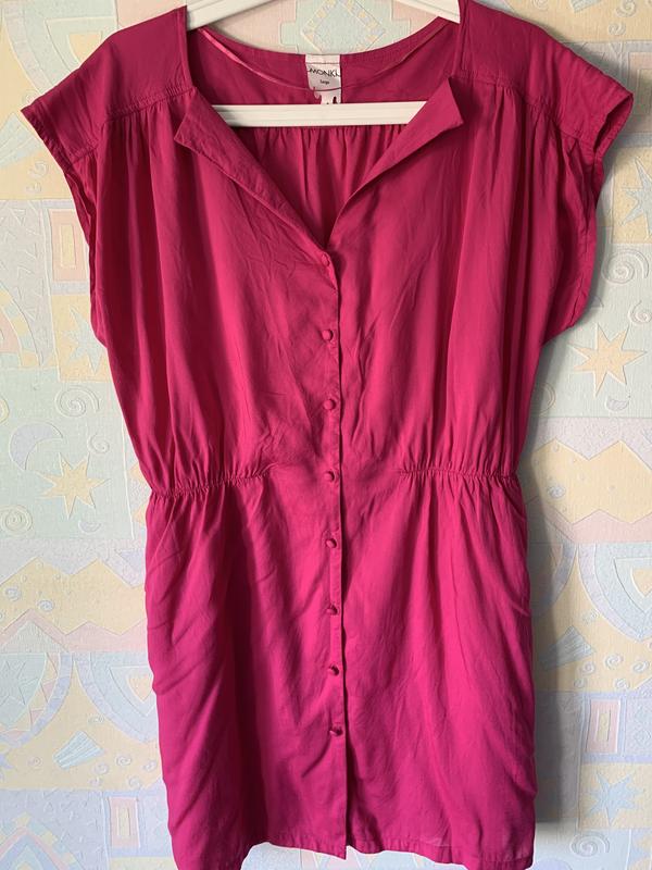 Відмінне плаття на літо, яскраве і нежарке! З кишенями, гудзички обтягнуті тканиною. Талія на резинці. В ідеалі, як нове. Пог 60, піт 38-55, поб 57, довжина 85.