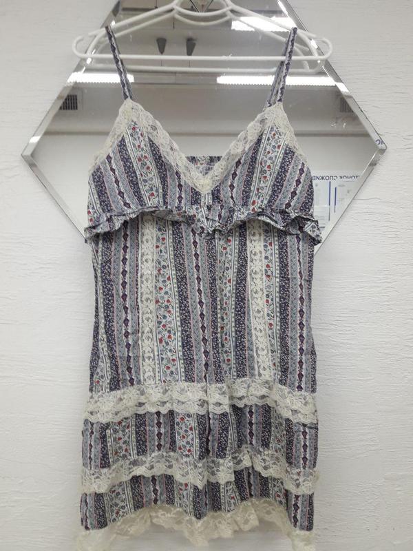 Платье из натурального хлопка с английским кружевом, винтажный сарафан от river island. Платье-сарафан английского бренда, оригинал. Удивительное сочетание нежности натурального хлопка, английского кружева. Замеры: пог 40 см., сзади на резинке. длина без лямок 70 см., общая длина 90 см.