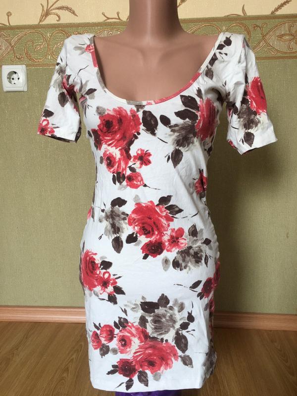 Жіноча міні сукня котонова обтягуюча принт квіти