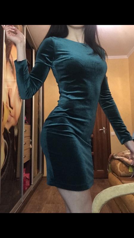 Велюровое темнозеленое платье по фигурке. Состояние нового. Одевалось один-два раза