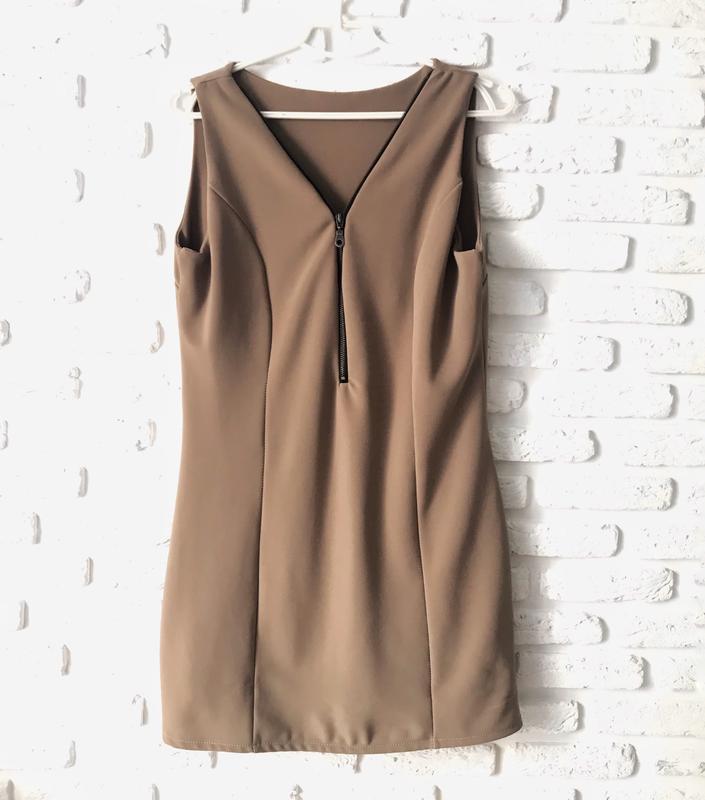 Красивое бежевое платье размер подойдёт на M и L. Очень красиво смотреться будет с большым бюстом. Змейка расстёгивается и застёгивается.