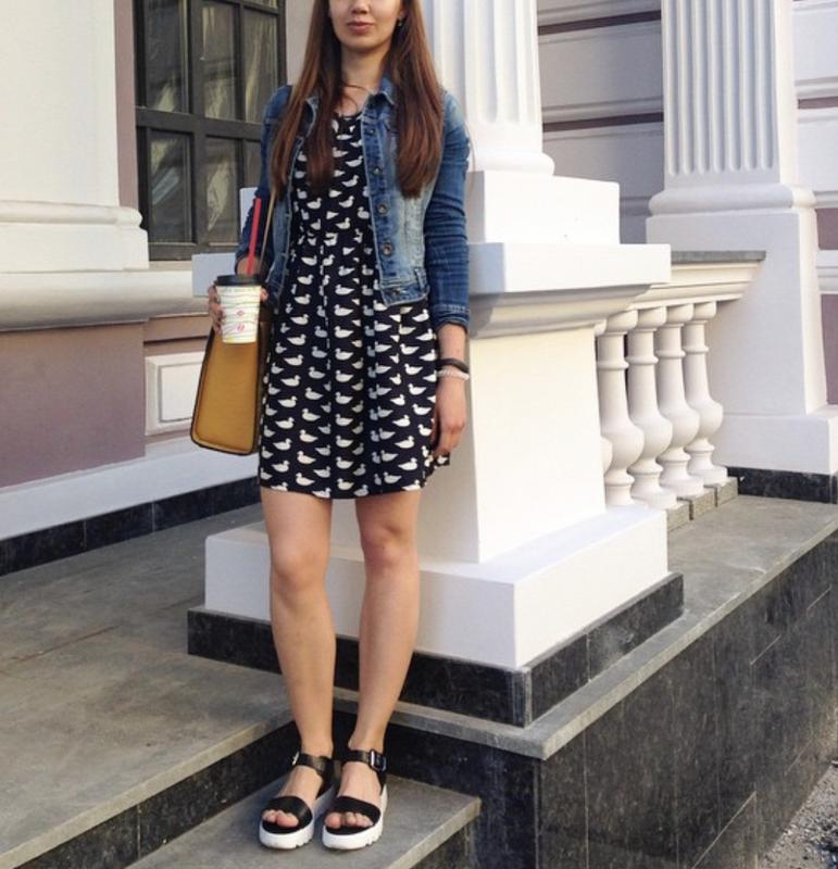 Продам легкое платье с забавным принтом уточек.На талии на резинке.