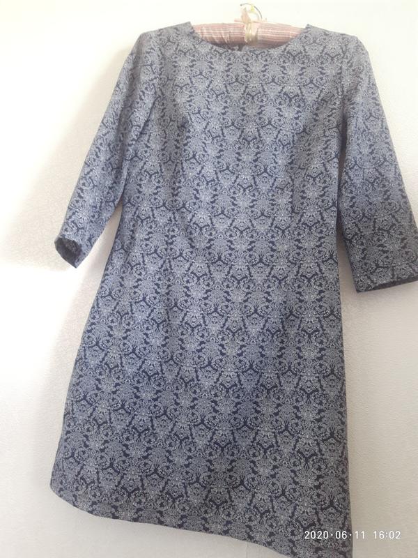 Синее платье с узором, приятная ткань , подчеркнет талию. Размер m