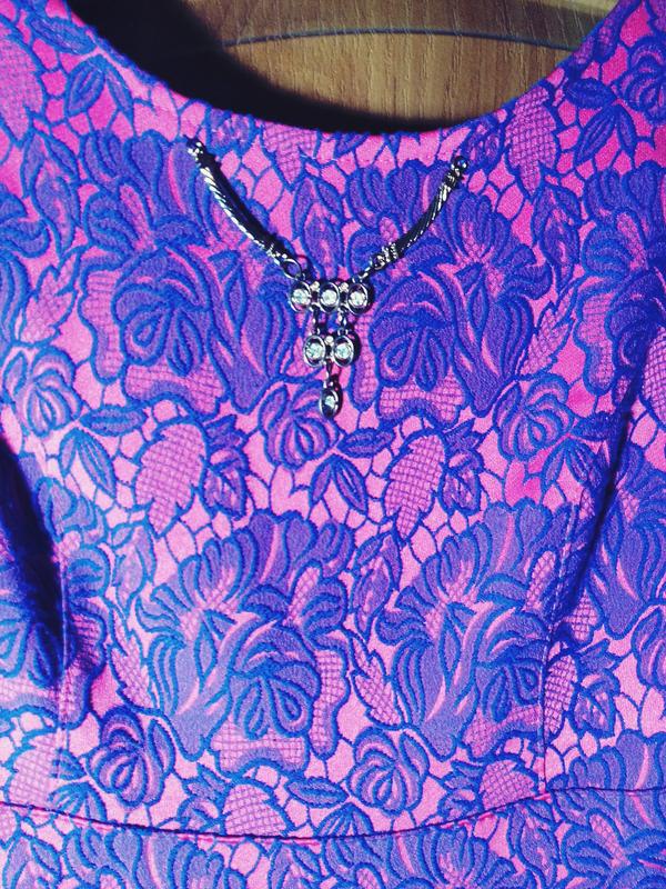 Красивое гипюровое платье розово-фиолетового цвета. Рукав 3/4, само по себе коротенькое. Состав: 100% хлопок Полуобхват талии - 36 см ОГ - 43 см ОБ - 56 см Длина платьица 84 см