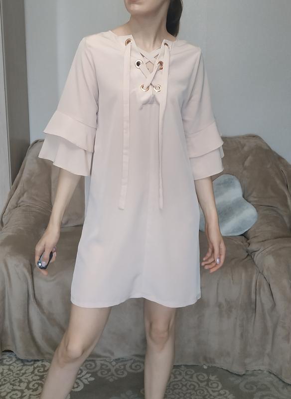 Новеньке плаття з біркою. Оригінальний дизайн. Тканина трішки просвічується, тому краще цю річ носити як туніку або з під'юпником. Заміри: плечі 41 см, груди ПО 52 см, талія ПО 58 см, бедра ПО 60 см. довжина 92см.
