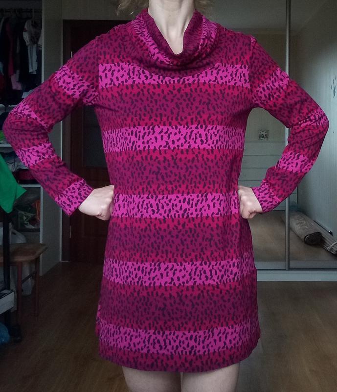 Платье или туника. Очень красивое. Немного стрейч. Два боковых кармана. Цвет яркий, как на фото. Сбоку два кармана. Интересная горловина - мешочком. Можно носить под лосины, джинсы, юбки и само по себе