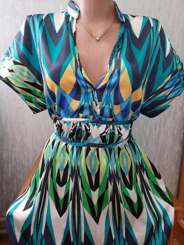 Яркое, летнее платье, пояс на завязках, без видимых дефектов.