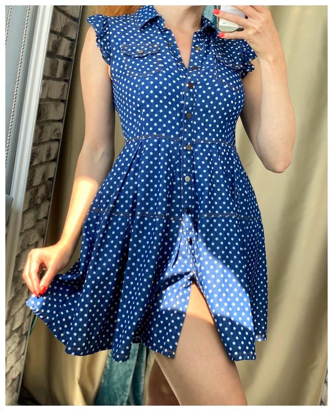Джинсовое платье в горох Love Fashion. 💥Состояние отличное, из нюансов только немного разошлись швы по спинке на выточках, и незначительные кошлатости с изнаночной стороны платья (указано на фото). 📌Размер указан L, но идет на М (лучше ориентироваться на замеры). 📌Плечи 34 см. 📌Длина 87 см. 📌ПОГ 45 см. 📌ПОТ 40 см. 📌ПОБ 88 см. 📦Отправка по 100% оплате на карту приват банка, или наложенным платежом по предоплате 120 грн. 🚫Обмен и возврат не предусмотрен.