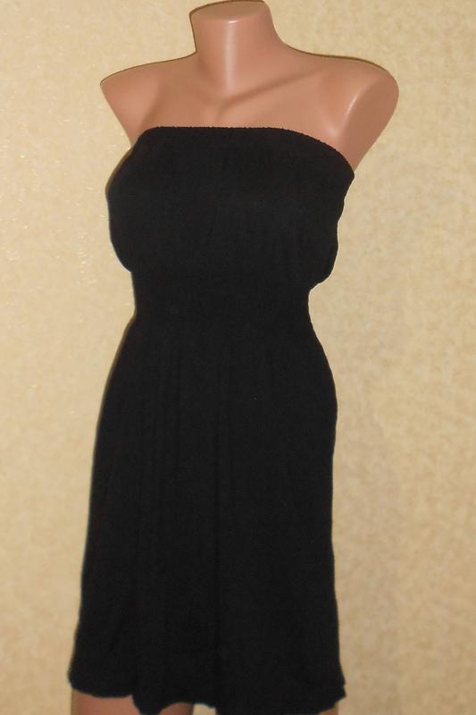 Легкий летний сарафан черного цвета. Талия на резинке, без бретелек . Состояние новой вещи. Размер 38-40 Замеры груди и талии по резинкам в не растянутом состоянии: п/о груди - 30 п/о талии - 30 длина - 70 Отвечу на все вопросы. Реальному покупателю торг.