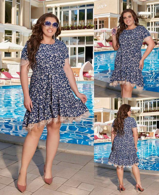 предоплата 100% Платье elis Модель : 3190 - Размеры: 50,52,54,56-58 - Длина изделия по спинке: 105 см (миди) - Длина изделия по переду: 90 см - Рукав: 25 см - Материал: турецкий принтованный софт - Цвета: черный, пудра, синий - Пояс из ткани в комплекте - Отделка по рукавам и низу гипюр ресничка - Цена : 440 грн Воздушное летнее платье из турецкого софта. В комплекте пояс из ткани, расклешенная юбка в складку с отделкой из гипюра по низу и рукавам.