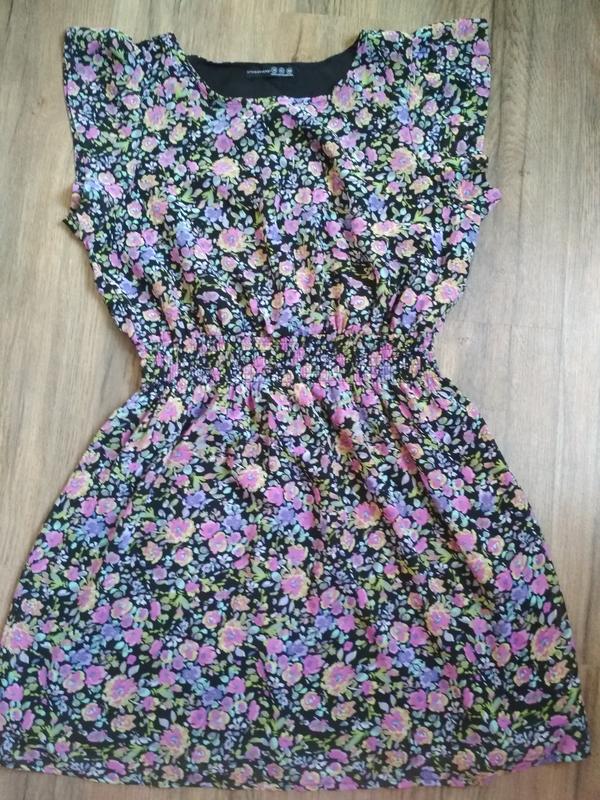 яркое, лёгкое платье, на поясе на резинке, длина до колен.в идеальном состоянии, длина рукавчика крылышком 10, ог 96, об 118 (но юбка клёш) , длина 84.