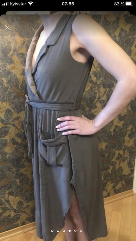 Плаття - туніка , розмір 12, колір оливковий,довжина 109 , з боку глибокі розрізи