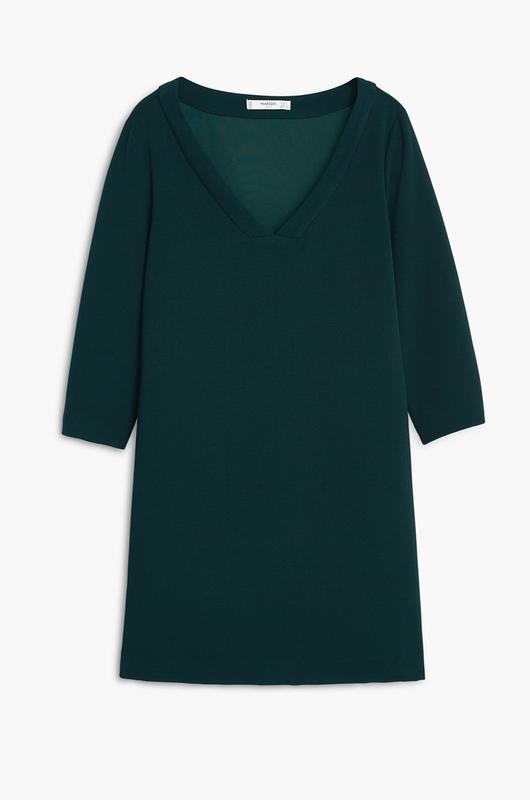 Платье с V-образным вырезам, прямого кроя, ткань в меру плотная. За дополнительной информацией обращайтесь.