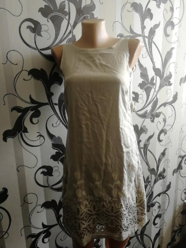 Летнее легкое дизайнерское, натуральное платье. Очень красивое ришелье внизу платья, размер 34