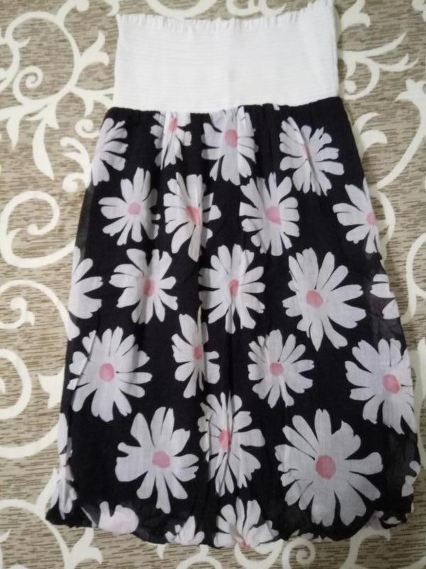 Отличный сарафан для жарких деньков!Можно носить как юбку замеры: длина - 62 см ОГ - 30см(тянеться до 44 см)