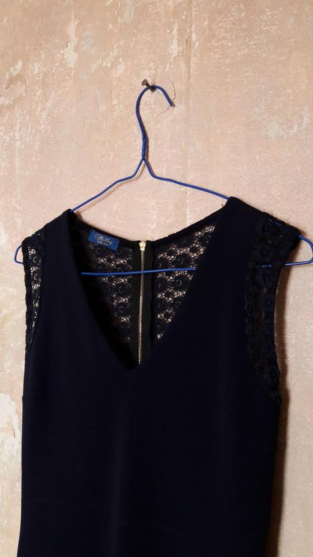 Платье темно-синего цвета. Замеры: длина 86 см, пог 37 см, пот 34 см, поб 43 см, ширина внизу по 47 см.