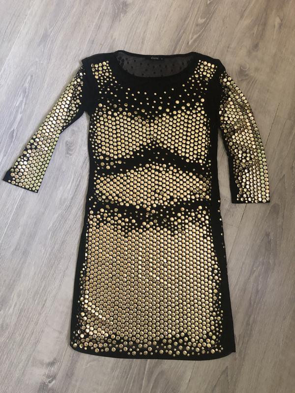 Красивое платье все в золотых чешуйках по бокам чёрная сетка)