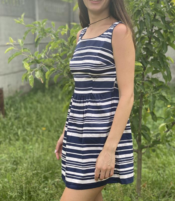 Літня сукня, розмір S. Є нюанс { на фото} він не помітний про носінні сукні взагалі😌 Мій зріст 170 см.