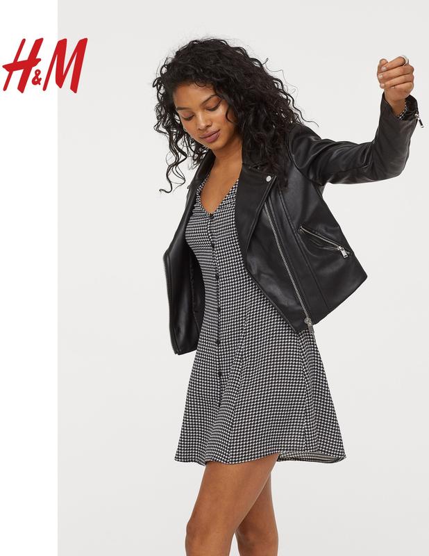 Короткое платье из тканого материала с треугольным вырезом горловины и застежкой на обтянутые пуговицы спереди. Длинные рукава с оборкой снизу. Цвет Черный/Рисунок «Гусиная лапка» Размер 38 ПОГ - 49 см ПОТ - 40-42 см ПОБ - 55-56 см Длина - 77 см Рукав - 62 см Состояние новой вещи, без этикетки.