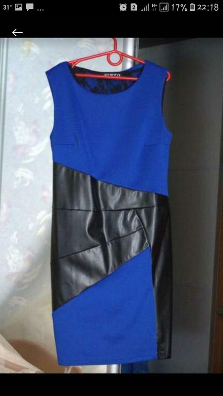 Платье ярко синего цвета,ткань плотненькая,спереди кож зам ,шикарно смотрится,сзади молния!