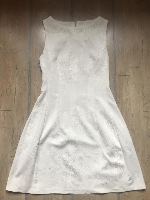 Надзвичайно легеньке та ніжне плаття кольору шампань, тканина з вибитим принцом та оздоблена на шиї перлинками. Стан ідеальний.