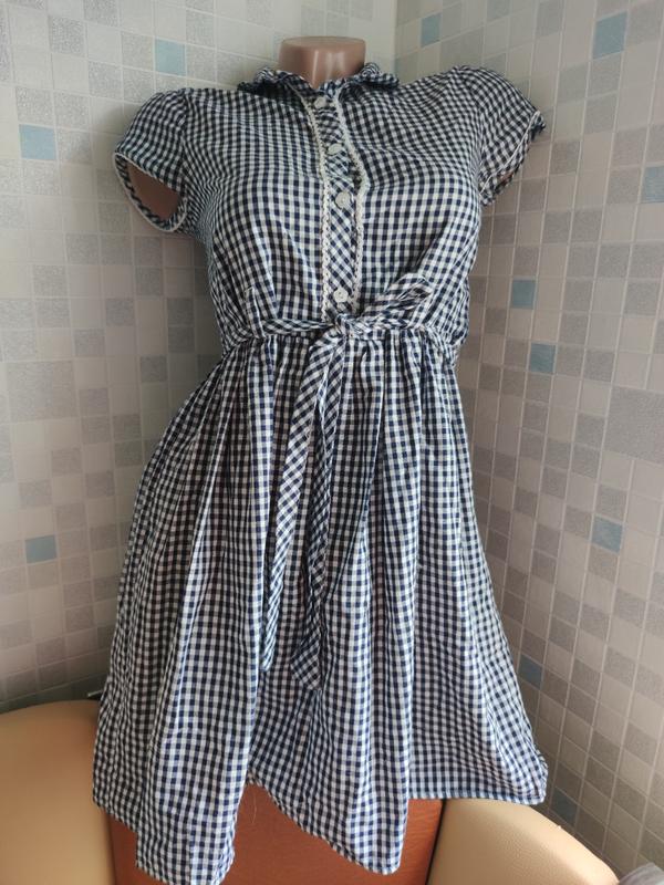 Хлопковое платье на пуговках под поясок. Очень легкое, практически невесомое, то, что нужно в жаркую погоду. Качество отменное! На подростка или худенькую девушку. Замеры длина: 80, ОГ 80, в поясе 84 см и завязывается.