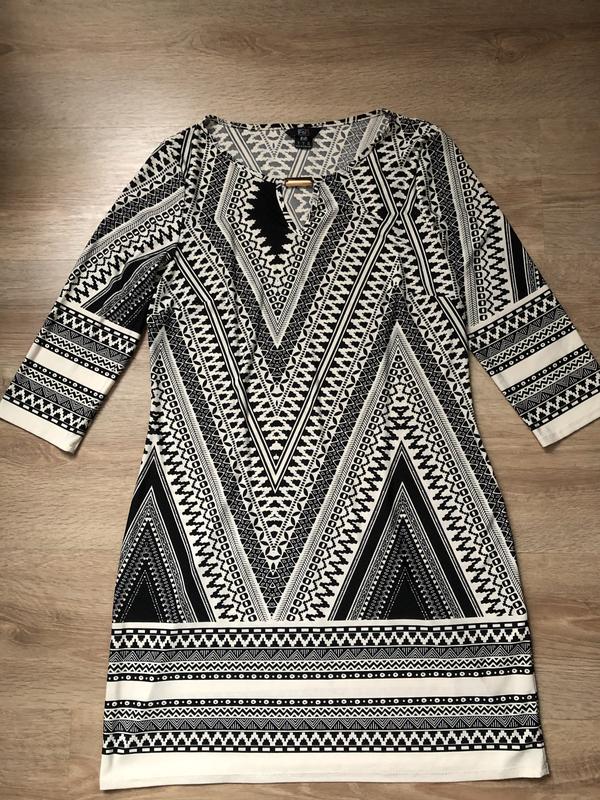 Плаття фірми F&F в орнамент. Довжина плаття 84 див. Малий дефект: на брошці здерта фарба трішки.