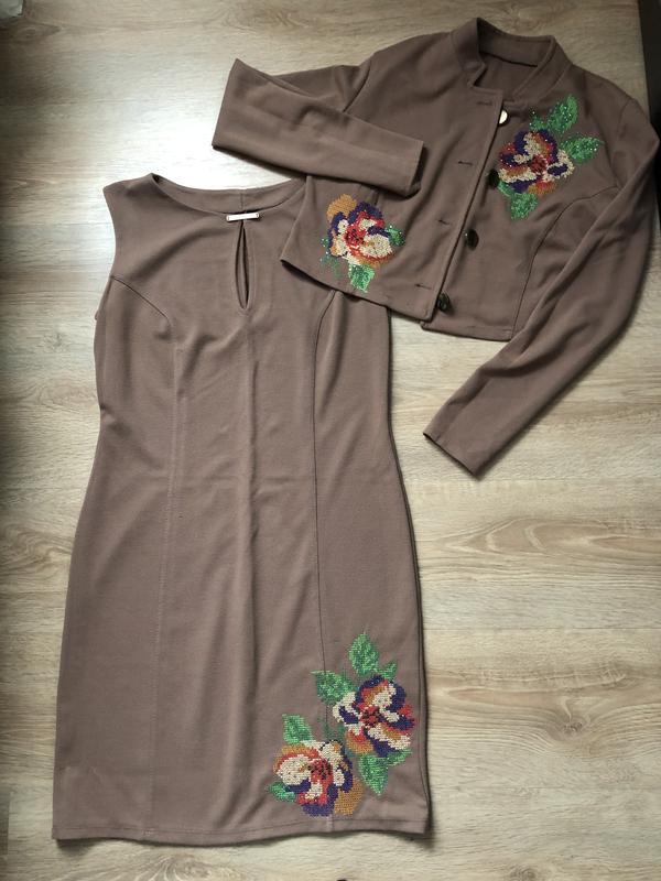 Плаття вишите без рукавів з жакетом на ґудзики теж вишитий, розмір 46. Довжина плаття 88 см, об’єм талії 86 см.