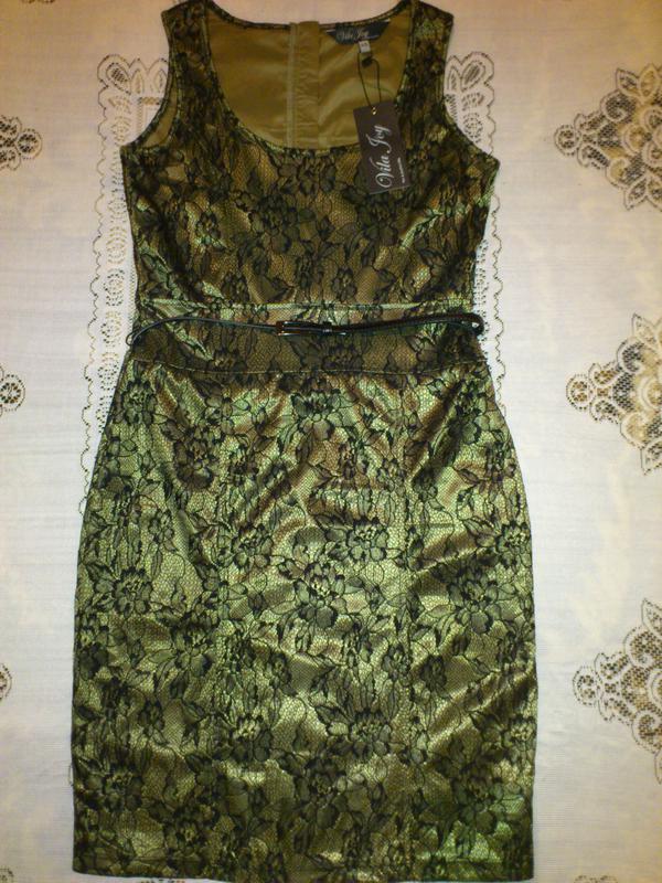 Гарне плаття поєднання оливкової та чорних кольорів на підкладці ззаду замок