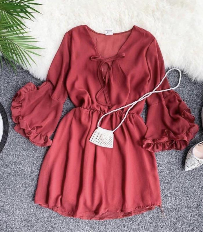 Продам плаття шифонове, колір бордо, на підкладці Талія на резинці Довжина 80см Нове, не одягалося ні разу, так як не підійшов розмір