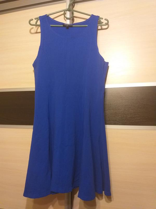 Классное платьице насыщенного синего цвета TopShop. Размер указан 14 европейский, фактически идет на 12. ПОГ в нерастянутом виде 44 см, ПОТ 40 см. Длина 80 см.Но платье должно сидеть по фигуре, поэтому параметры должны быть больше чем по замерам.