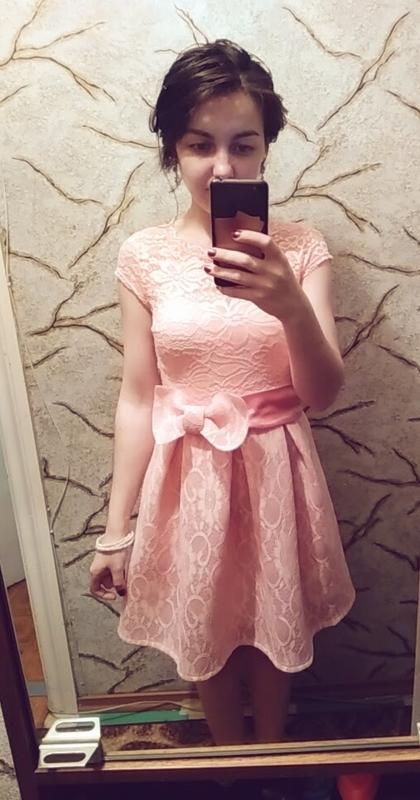 Рожеве плаття, розмір S. Додатково є поясок із бантиком. Докладні заміри можу скинути особисто в повідомлення. Верх гіпюр - просвічується тільки спинка, низ трішки пишний- креп сітка (матеіал)із підкладкою.