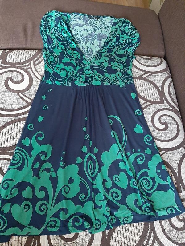 Розмір вказаний 42. Заміри: ПОГ 42, плечі 31, довжина по спині 92 см. Колір темно синій та м'ятний. Тканина легка приємна віскоза, на літо чудово!