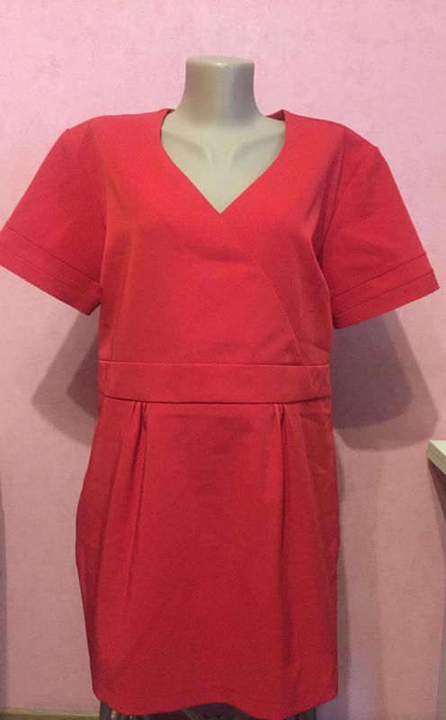 Стильное платье ярко красного цвета! Свободный крой, немного приталено. Сбоку змейка. Как платье будет на рост не больше 160см, если выше - будет как туника. Плечи - 44см Рукав - 20см Общая длинна - 79см От плеч до талии - 39см ПО груди - 50см ПО талии - 47см ПО бедер - 54см
